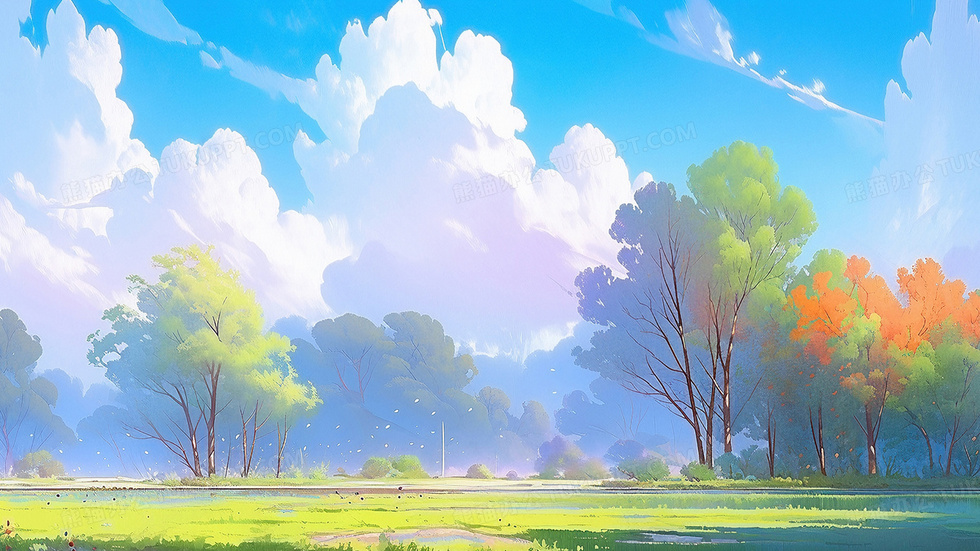 本作品内容为手绘春天树林草坪插画, 格式为 jpg, 大小4 MB, 图片尺寸为3200 x 1800, 源文件无水印, 欢迎使用熊猫办公。 如认为平台内容涉嫌侵权,可通过邮件:tousu@tukuppt.com提出书面通知,我们将及时处理。