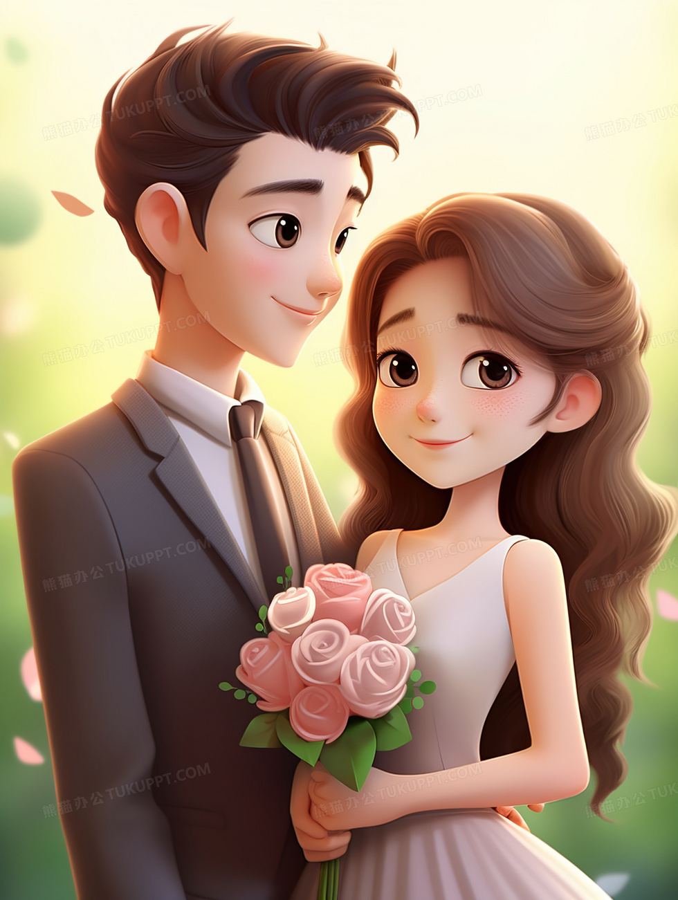 本作品内容为一对相拥相爱的情侣3D情人节插画, 格式为 jpg, 大小4 MB, 图片尺寸为1856 x 2464, 源文件无水印, 欢迎使用熊猫办公。 如认为平台内容涉嫌侵权,可通过邮件:tousu@tukuppt.com提出书面通知,我们将及时处理。