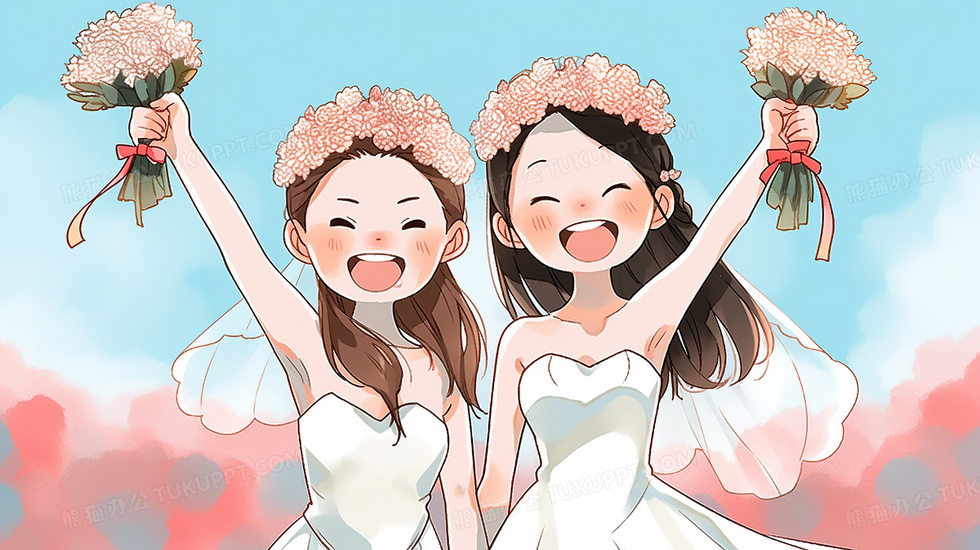 本作品内容为两个拿着手捧花的新娘在开心的笑着, 格式为 jpg, 大小3 MB, 图片尺寸为2912 x 1632, 源文件无水印, 欢迎使用熊猫办公。 如认为平台内容涉嫌侵权,可通过邮件:tousu@tukuppt.com提出书面通知,我们将及时处理。