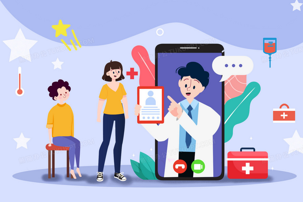 本作品内容为医生线上诊断插画, 格式为 psd, 大小4 MB, 请使用软件PhotoShop(CC)打开, 源文件无水印, 欢迎使用熊猫办公。 如认为平台内容涉嫌侵权,可通过邮件:tousu@tukuppt.com提出书面通知,我们将及时处理。