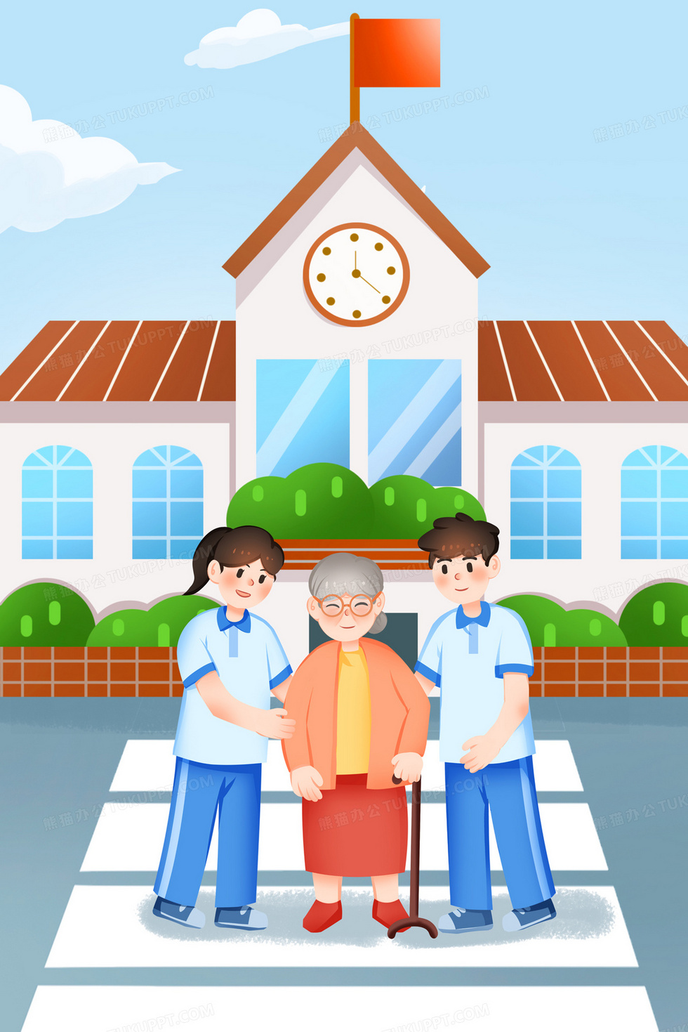 本作品内容为两个初中生扶老奶奶过马路插画, 格式为 psd, 大小18 MB, 请使用软件PhotoShop(CC)打开, 源文件无水印, 欢迎使用熊猫办公。 如认为平台内容涉嫌侵权,可通过邮件:tousu@tukuppt.com提出书面通知,我们将及时处理。