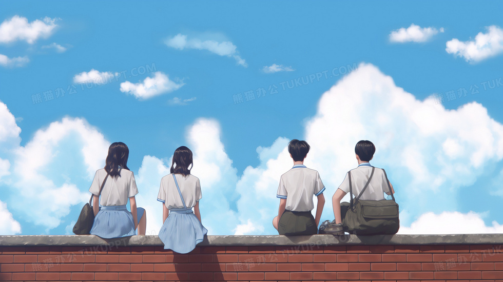 本作品内容为毕业季几个穿着校服的学生坐在天台眺望天空创意插画, 格式为 jpg, 大小2 MB, 图片尺寸为2912 x 1632, 源文件无水印, 欢迎使用熊猫办公。 如认为平台内容涉嫌侵权,可通过邮件:tousu@tukuppt.com提出书面通知,我们将及时处理。