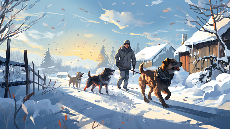 本作品内容为雪原上的狗子与主人插画, 格式为 jpg, 大小5 MB, 图片尺寸为2912 x 1632, 源文件无水印, 欢迎使用熊猫办公。 如认为平台内容涉嫌侵权,可通过邮件:tousu@tukuppt.com提出书面通知,我们将及时处理。