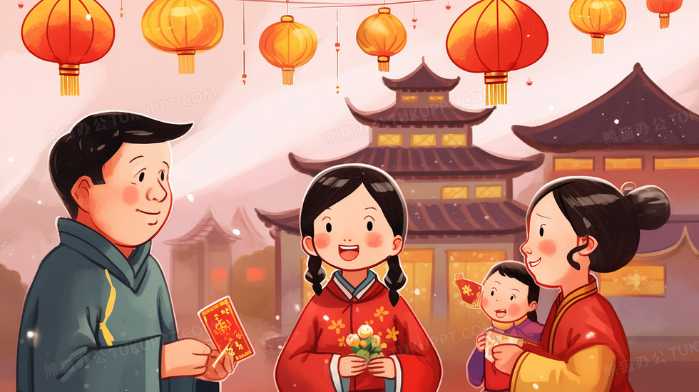 本作品内容为家庭成员参加春节庆典插画, 格式为 jpg, 大小5 MB, 图片尺寸为2912 x 1632, 源文件无水印, 欢迎使用熊猫办公。 如认为平台内容涉嫌侵权,可通过邮件:tousu@tukuppt.com提出书面通知,我们将及时处理。