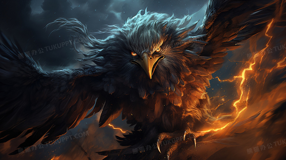 本作品内容为乌云密布天空中的愤怒的老鹰插画, 格式为 jpg, 大小3 MB, 图片尺寸为2912 x 1632, 源文件无水印, 欢迎使用熊猫办公。 如认为平台内容涉嫌侵权,可通过邮件:tousu@tukuppt.com提出书面通知,我们将及时处理。