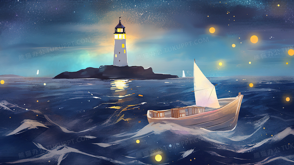 本作品内容为手绘风海面上的帆船和岸边的灯塔创意插画, 格式为 jpg, 大小6 MB, 图片尺寸为2546 x 1432, 源文件无水印, 欢迎使用熊猫办公。 如认为平台内容涉嫌侵权,可通过邮件:tousu@tukuppt.com提出书面通知,我们将及时处理。