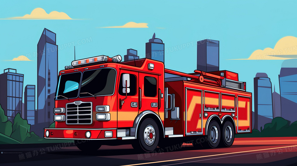本作品内容为一台红色卡通消防车插画, 格式为 jpg, 大小5 MB, 图片尺寸为2912 x 1632, 源文件无水印, 欢迎使用熊猫办公。 如认为平台内容涉嫌侵权,可通过邮件:tousu@tukuppt.com提出书面通知,我们将及时处理。