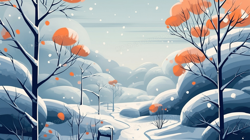 本作品内容为冬季飘雪红叶山林插画, 格式为 jpg, 大小5 MB, 图片尺寸为2912 x 1632, 源文件无水印, 欢迎使用熊猫办公。 如认为平台内容涉嫌侵权,可通过邮件:tousu@tukuppt.com提出书面通知,我们将及时处理。