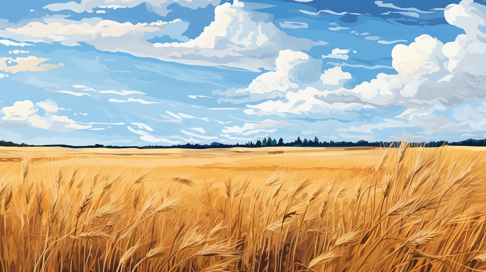 本作品内容为金色麦田随风摇摆的麦穗创意插画, 格式为 jpg, 大小6 MB, 图片尺寸为2912 x 1632, 源文件无水印, 欢迎使用熊猫办公。 如认为平台内容涉嫌侵权,可通过邮件:tousu@tukuppt.com提出书面通知,我们将及时处理。