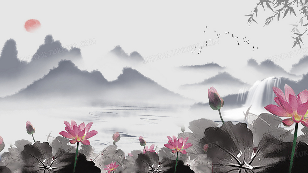 本作品内容为中国风山水荷花水墨插画, 格式为 psd, 大小62 MB, 请使用软件PhotoShop(CS6)打开, 源文件无水印, 欢迎使用熊猫办公。 如认为平台内容涉嫌侵权,可通过邮件:tousu@tukuppt.com提出书面通知,我们将及时处理。