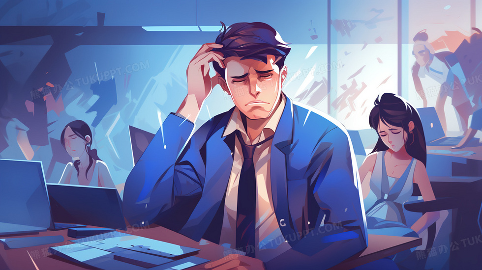 本作品内容为压力山大的职场人士插画, 格式为 jpg, 大小5 MB, 图片尺寸为2912 x 1632, 源文件无水印, 欢迎使用熊猫办公。 如认为平台内容涉嫌侵权,可通过邮件:tousu@tukuppt.com提出书面通知,我们将及时处理。