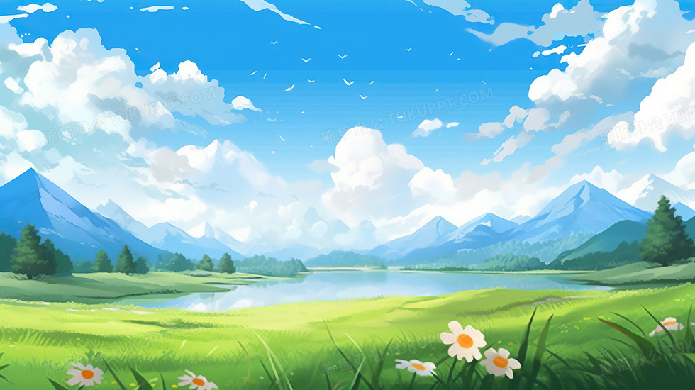 本作品内容为唯美春天草地小雏菊春季插画, 格式为 jpg, 大小6 MB, 图片尺寸为2912 x 1632, 源文件无水印, 欢迎使用熊猫办公。 如认为平台内容涉嫌侵权,可通过邮件:tousu@tukuppt.com提出书面通知,我们将及时处理。