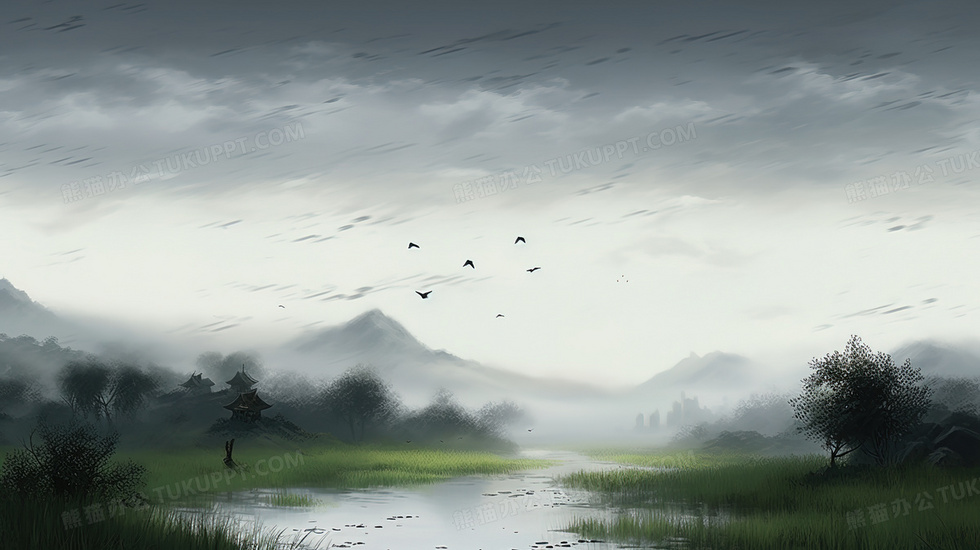 本作品内容为远山草原上的细雨水墨画插画, 格式为 jpg, 大小4 MB, 图片尺寸为2912 x 1632, 源文件无水印, 欢迎使用熊猫办公。 如认为平台内容涉嫌侵权,可通过邮件:tousu@tukuppt.com提出书面通知,我们将及时处理。