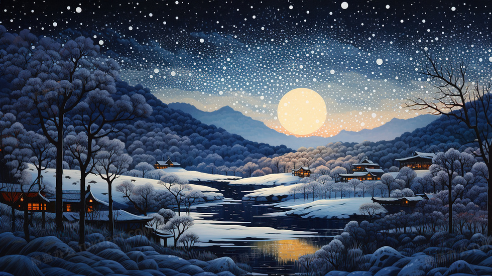 本作品内容为冬季山涧林地唯美夜景插画, 格式为 jpg, 大小7 MB, 图片尺寸为2912 x 1632, 源文件无水印, 欢迎使用熊猫办公。 如认为平台内容涉嫌侵权,可通过邮件:tousu@tukuppt.com提出书面通知,我们将及时处理。