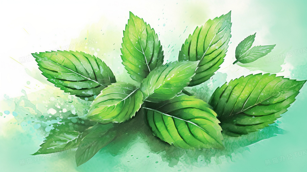 本作品内容为绿色水彩质感薄荷叶, 格式为 jpg, 大小6 MB, 图片尺寸为2912 x 1632, 源文件无水印, 欢迎使用熊猫办公。 如认为平台内容涉嫌侵权,可通过邮件:tousu@tukuppt.com提出书面通知,我们将及时处理。