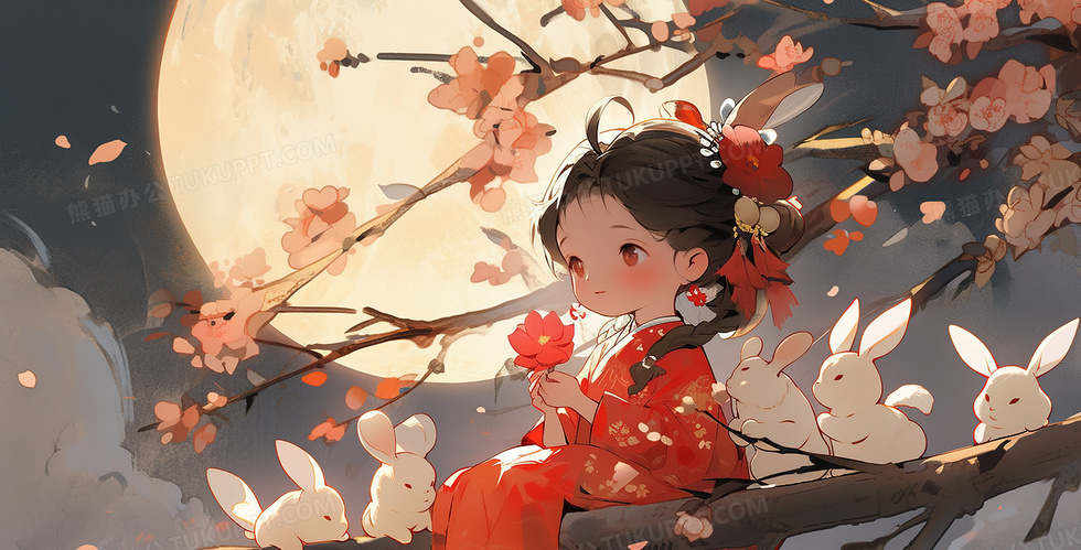 本作品内容为古风少女中秋节抱着兔子赏月的女孩创意插画, 格式为 jpg, 大小6 MB, 图片尺寸为2912 x 1482, 源文件无水印, 欢迎使用熊猫办公。 如认为平台内容涉嫌侵权,可通过邮件:tousu@tukuppt.com提出书面通知,我们将及时处理。