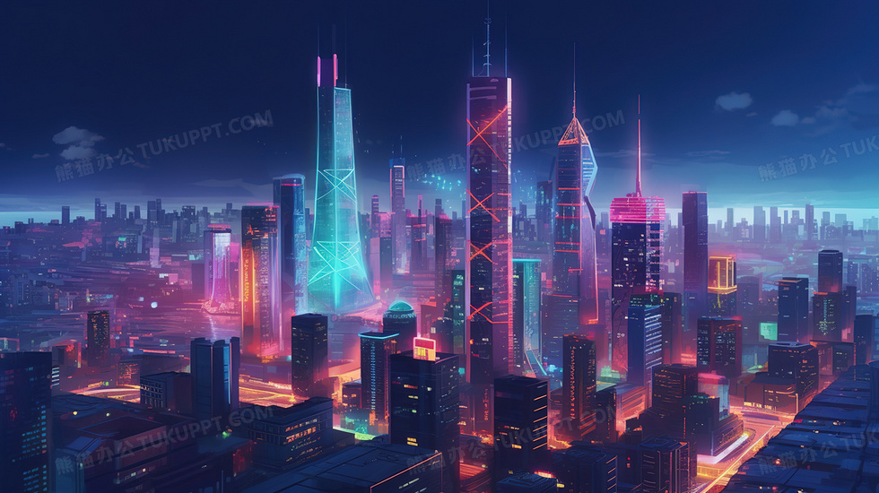 本作品内容为3D立体彩色城市夜景插画, 格式为 jpg, 大小6 MB, 图片尺寸为2912 x 1632, 源文件无水印, 欢迎使用熊猫办公。 如认为平台内容涉嫌侵权,可通过邮件:tousu@tukuppt.com提出书面通知,我们将及时处理。