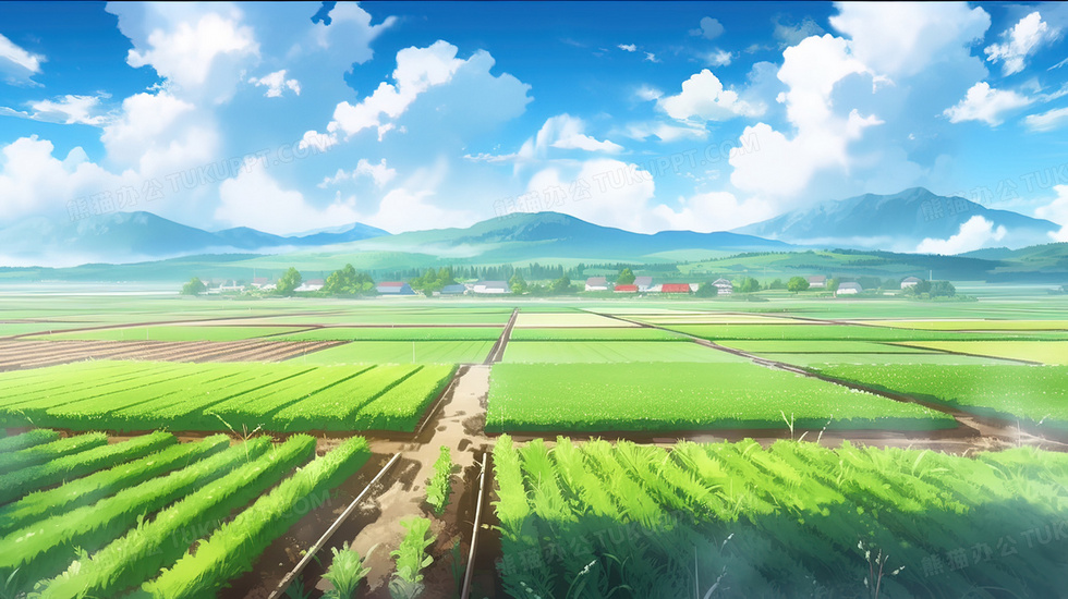 本作品内容为乡村绿色田野庄稼风景插画, 格式为 jpg, 大小3 MB, 图片尺寸为2912 x 1632, 源文件无水印, 欢迎使用熊猫办公。 如认为平台内容涉嫌侵权,可通过邮件:tousu@tukuppt.com提出书面通知,我们将及时处理。