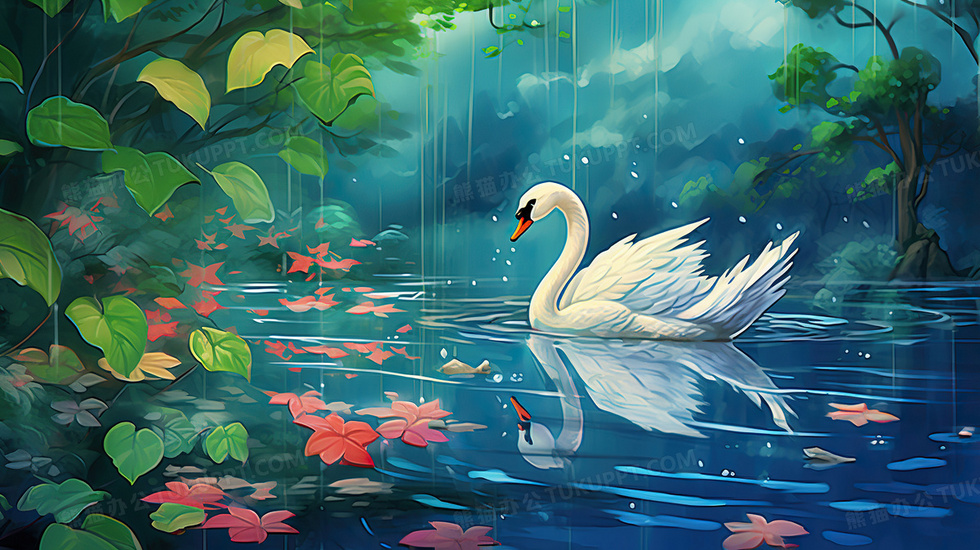 本作品内容为唯美春天风景池塘天鹅插画, 格式为 jpg, 大小3 MB, 图片尺寸为2912 x 1632, 源文件无水印, 欢迎使用熊猫办公。 如认为平台内容涉嫌侵权,可通过邮件:tousu@tukuppt.com提出书面通知,我们将及时处理。