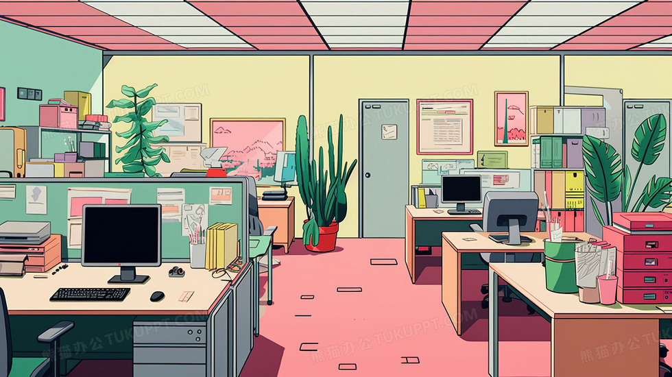 本作品内容为怀旧风格设计的职场办公室插画, 格式为 jpg, 大小3 MB, 图片尺寸为2912 x 1632, 源文件无水印, 欢迎使用熊猫办公。 如认为平台内容涉嫌侵权,可通过邮件:tousu@tukuppt.com提出书面通知,我们将及时处理。