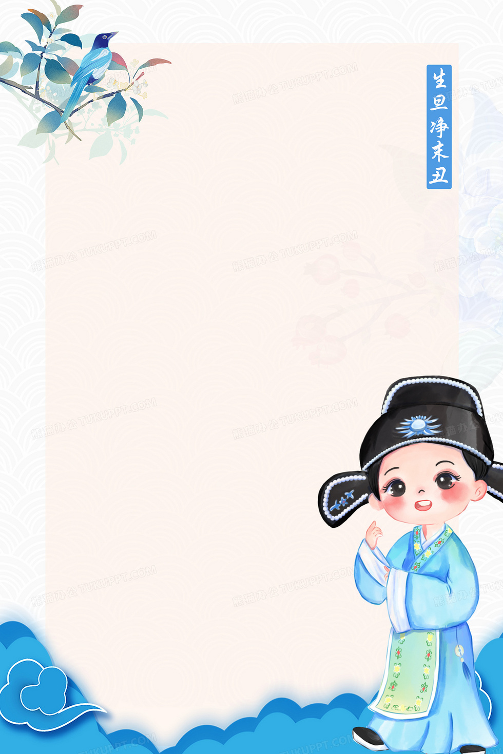 本作品内容为蓝色国风京剧生旦净末丑合成背景, 格式为 psd, 大小35 MB, 图片尺寸为3543 x 5314, 作品中背景图片无需修改, 源文件无水印,可以直接使用, 欢迎使用熊猫办公。 如认为平台内容涉嫌侵权,可通过邮件:tousu@tukuppt.com提出书面通知,我们将及时处理。