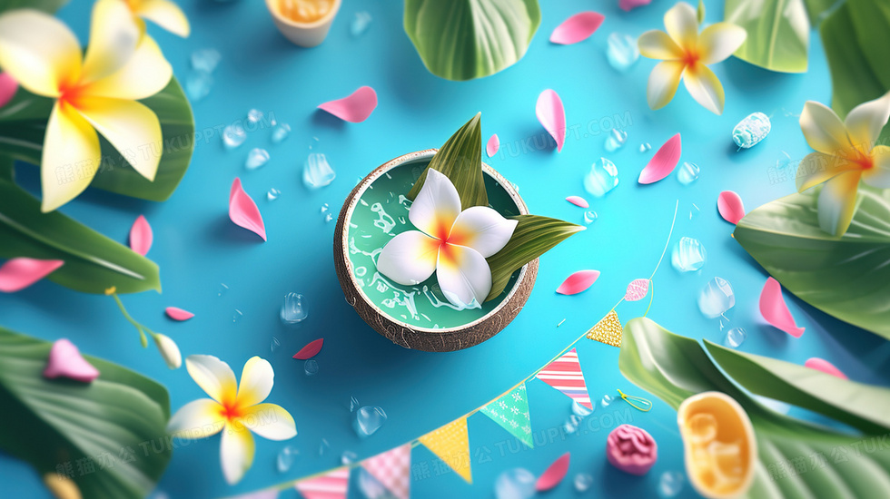 本作品内容为泼水节椰子壳里的水和鸡蛋花插画, 格式为 jpg, 大小3 MB, 图片尺寸为2912 x 1632, 源文件无水印, 欢迎使用熊猫办公。 如认为平台内容涉嫌侵权,可通过邮件:tousu@tukuppt.com提出书面通知,我们将及时处理。