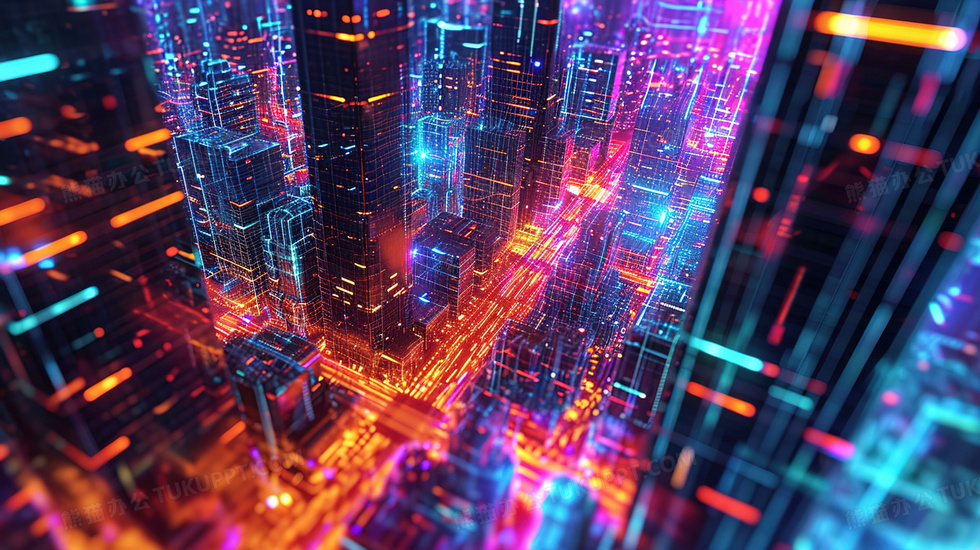 本作品内容为未来科技感光影空间感赛博城市插画, 格式为 jpg, 大小4 MB, 图片尺寸为2912 x 1632, 源文件无水印, 欢迎使用熊猫办公。 如认为平台内容涉嫌侵权,可通过邮件:tousu@tukuppt.com提出书面通知,我们将及时处理。