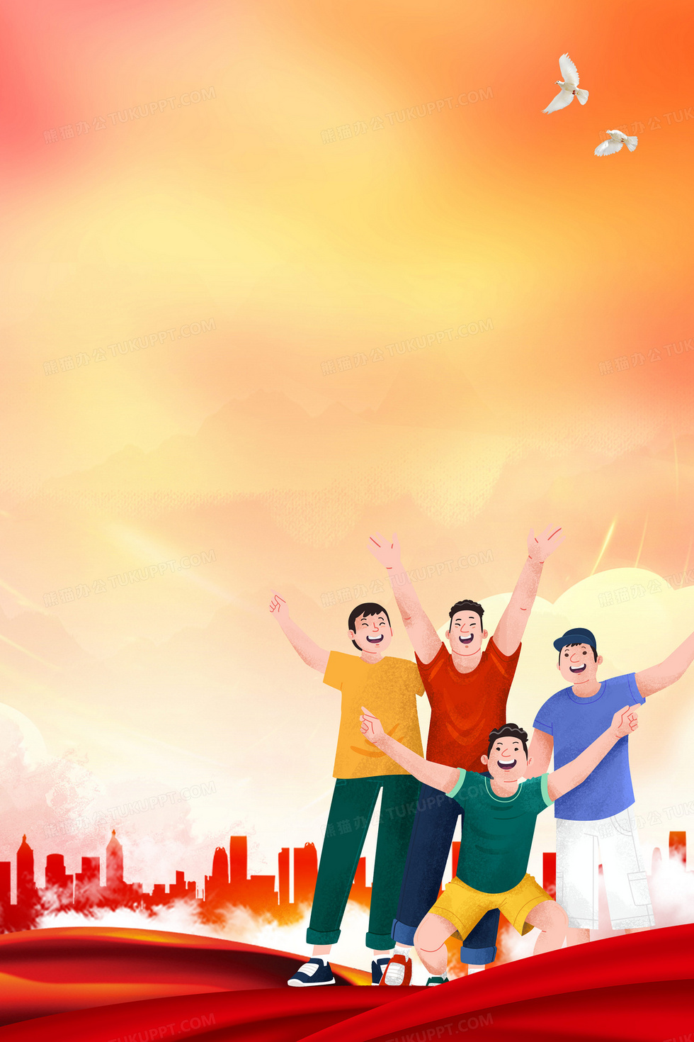 本作品内容为简约大气五四青年节红色背景, 格式为 psd, 大小37 MB, 图片尺寸为3543 x 5315, 作品中背景图片无需修改, 源文件无水印,可以直接使用, 欢迎使用熊猫办公。 如认为平台内容涉嫌侵权,可通过邮件:tousu@tukuppt.com提出书面通知,我们将及时处理。