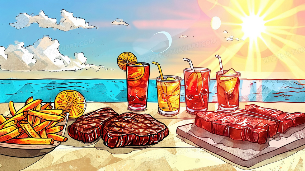 本作品内容为美食烤肉饮料插画, 格式为 jpg, 大小4 MB, 图片尺寸为2912 x 1632, 源文件无水印, 欢迎使用熊猫办公。 如认为平台内容涉嫌侵权,可通过邮件:tousu@tukuppt.com提出书面通知,我们将及时处理。