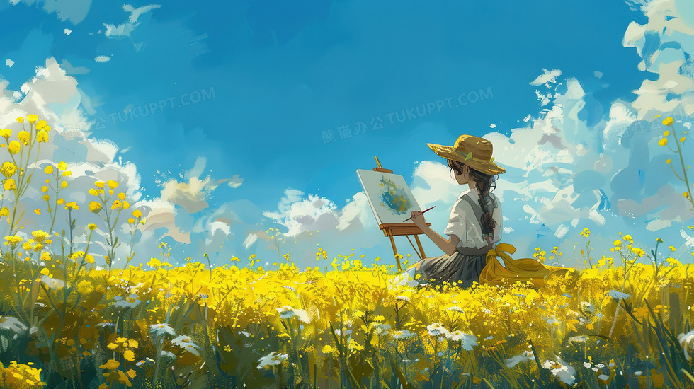 本作品内容为唯美清新春天油菜花田插画, 格式为 jpg, 大小4 MB, 图片尺寸为2912 x 1632, 源文件无水印, 欢迎使用熊猫办公。 如认为平台内容涉嫌侵权,可通过邮件:tousu@tukuppt.com提出书面通知,我们将及时处理。