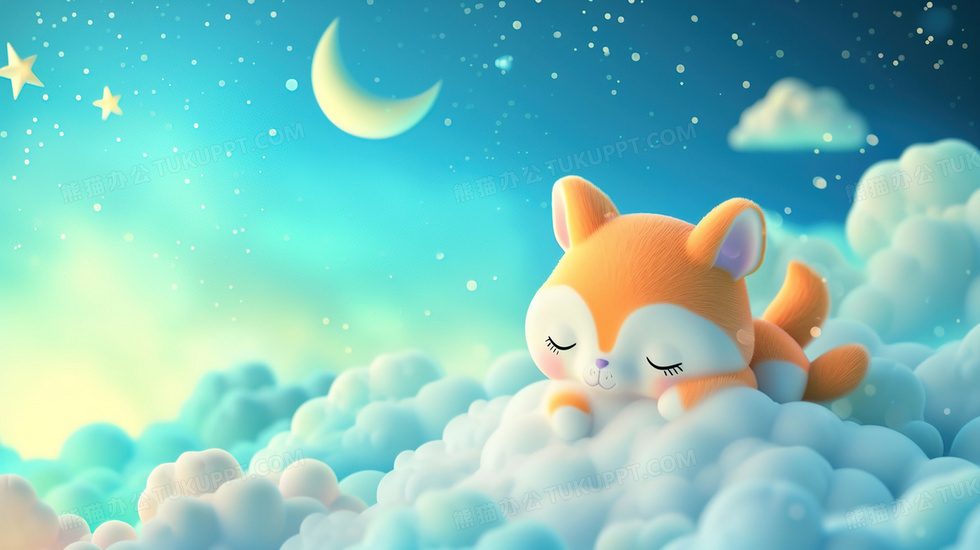 本作品内容为躺在云团上睡觉的3D萌宠插画, 格式为 jpg, 大小3 MB, 图片尺寸为2912 x 1632, 源文件无水印, 欢迎使用熊猫办公。 如认为平台内容涉嫌侵权,可通过邮件:tousu@tukuppt.com提出书面通知,我们将及时处理。