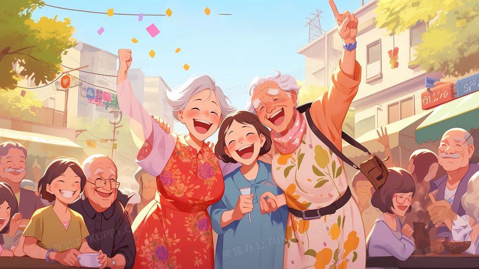 本作品内容为老年人聚会合影插画, 格式为 jpg, 大小3 MB, 图片尺寸为2912 x 1632, 源文件无水印, 欢迎使用熊猫办公。 如认为平台内容涉嫌侵权,可通过邮件:tousu@tukuppt.com提出书面通知,我们将及时处理。