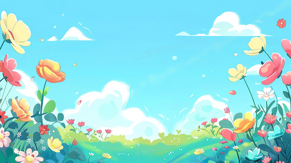 本作品内容为卡通风春天花草背景, 格式为 jpg, 大小3 MB, 图片尺寸为2912 x 1632, 作品中背景图片无需修改, 源文件无水印,可以直接使用, 欢迎使用熊猫办公。 如认为平台内容涉嫌侵权,可通过邮件:tousu@tukuppt.com提出书面通知,我们将及时处理。