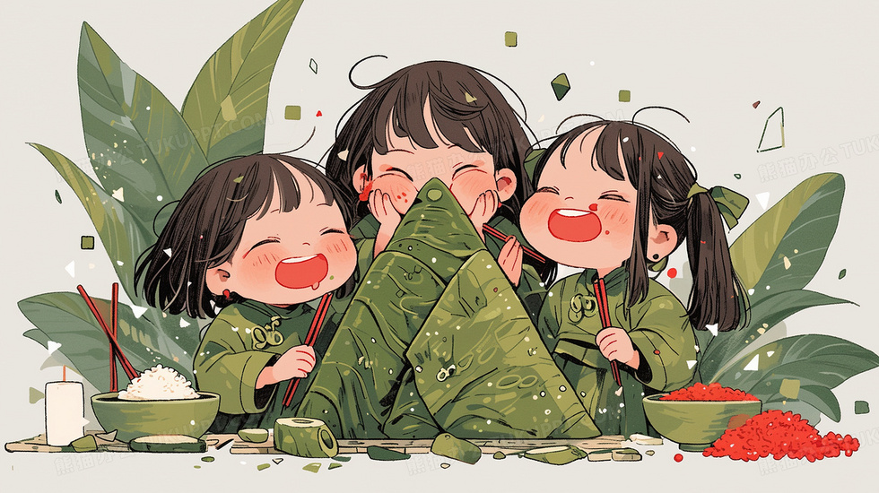 本作品内容为端午吃粽子的女孩子创意插画, 格式为 jpg, 大小4 MB, 图片尺寸为2912 x 1632, 源文件无水印, 欢迎使用熊猫办公。 如认为平台内容涉嫌侵权,可通过邮件:tousu@tukuppt.com提出书面通知,我们将及时处理。