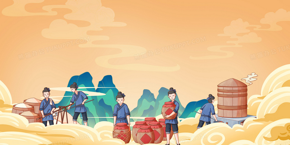 本作品内容为国潮风古人酿酒合成背景, 格式为 psd, 大小26 MB, 图片尺寸为4724 x 2362, 作品中背景图片无需修改, 源文件无水印,可以直接使用, 欢迎使用熊猫办公。 如认为平台内容涉嫌侵权,可通过邮件:tousu@tukuppt.com提出书面通知,我们将及时处理。