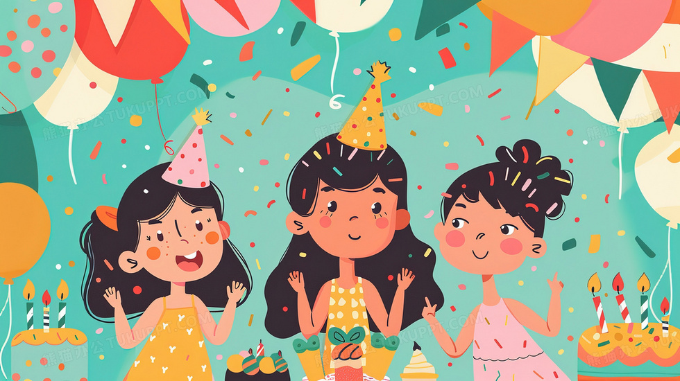 本作品内容为手绘卡通儿童节生日派对插画, 格式为 jpg, 大小3 MB, 图片尺寸为2912 x 1632, 源文件无水印, 欢迎使用熊猫办公。 如认为平台内容涉嫌侵权,可通过邮件:tousu@tukuppt.com提出书面通知,我们将及时处理。