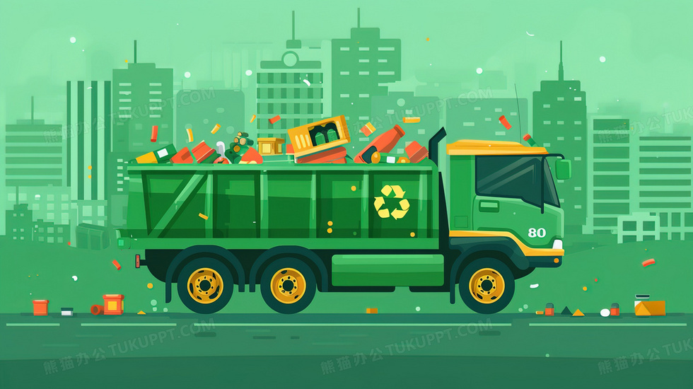 本作品内容为绿色城市垃圾车插画, 格式为 jpg, 大小2 MB, 图片尺寸为2912 x 1632, 源文件无水印, 欢迎使用熊猫办公。 如认为平台内容涉嫌侵权,可通过邮件:tousu@tukuppt.com提出书面通知,我们将及时处理。