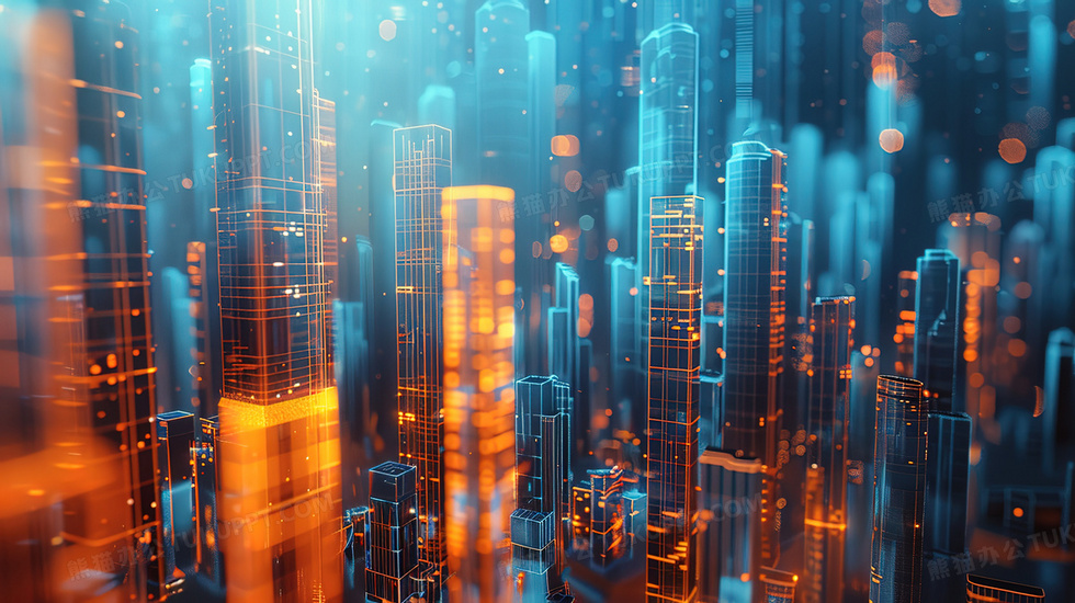 本作品内容为科技感城市建筑高楼插画, 格式为 jpg, 大小3 MB, 图片尺寸为2912 x 1632, 源文件无水印, 欢迎使用熊猫办公。 如认为平台内容涉嫌侵权,可通过邮件:tousu@tukuppt.com提出书面通知,我们将及时处理。