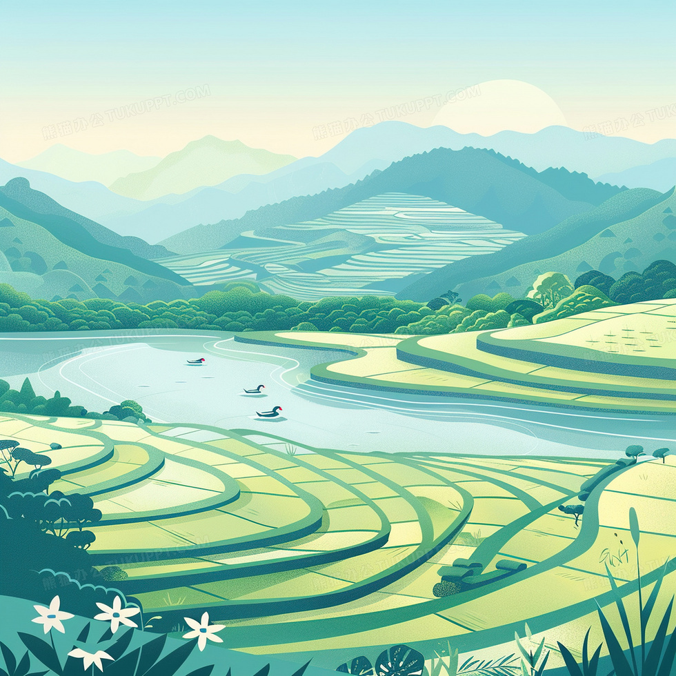 本作品内容为唯美立夏乡村梯田风景插画, 格式为 jpg, 大小4 MB, 图片尺寸为2048 x 2048, 源文件无水印, 欢迎使用熊猫办公。 如认为平台内容涉嫌侵权,可通过邮件:tousu@tukuppt.com提出书面通知,我们将及时处理。