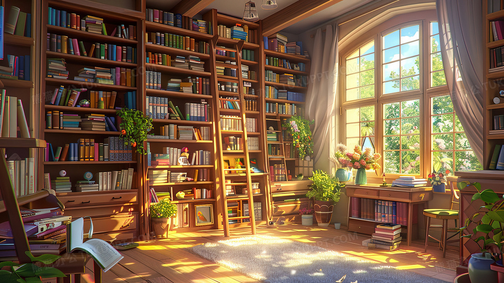 本作品内容为安静的图书馆书房场景插画, 格式为 jpg, 大小4 MB, 图片尺寸为2912 x 1632, 源文件无水印, 欢迎使用熊猫办公。 如认为平台内容涉嫌侵权,可通过邮件:tousu@tukuppt.com提出书面通知,我们将及时处理。