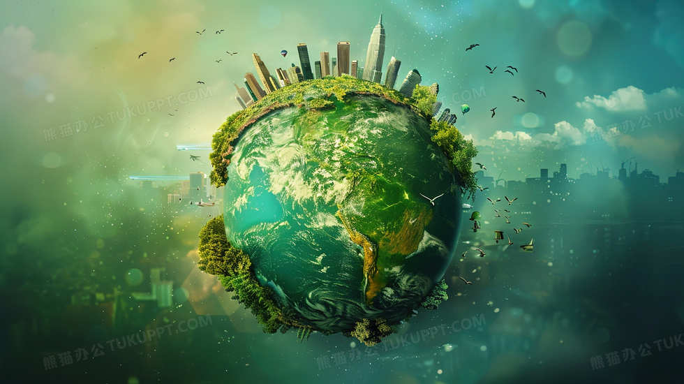 本作品内容为地球上的绿化与城市插画, 格式为 jpg, 大小3 MB, 图片尺寸为2912 x 1632, 源文件无水印, 欢迎使用熊猫办公。 如认为平台内容涉嫌侵权,可通过邮件:tousu@tukuppt.com提出书面通知,我们将及时处理。