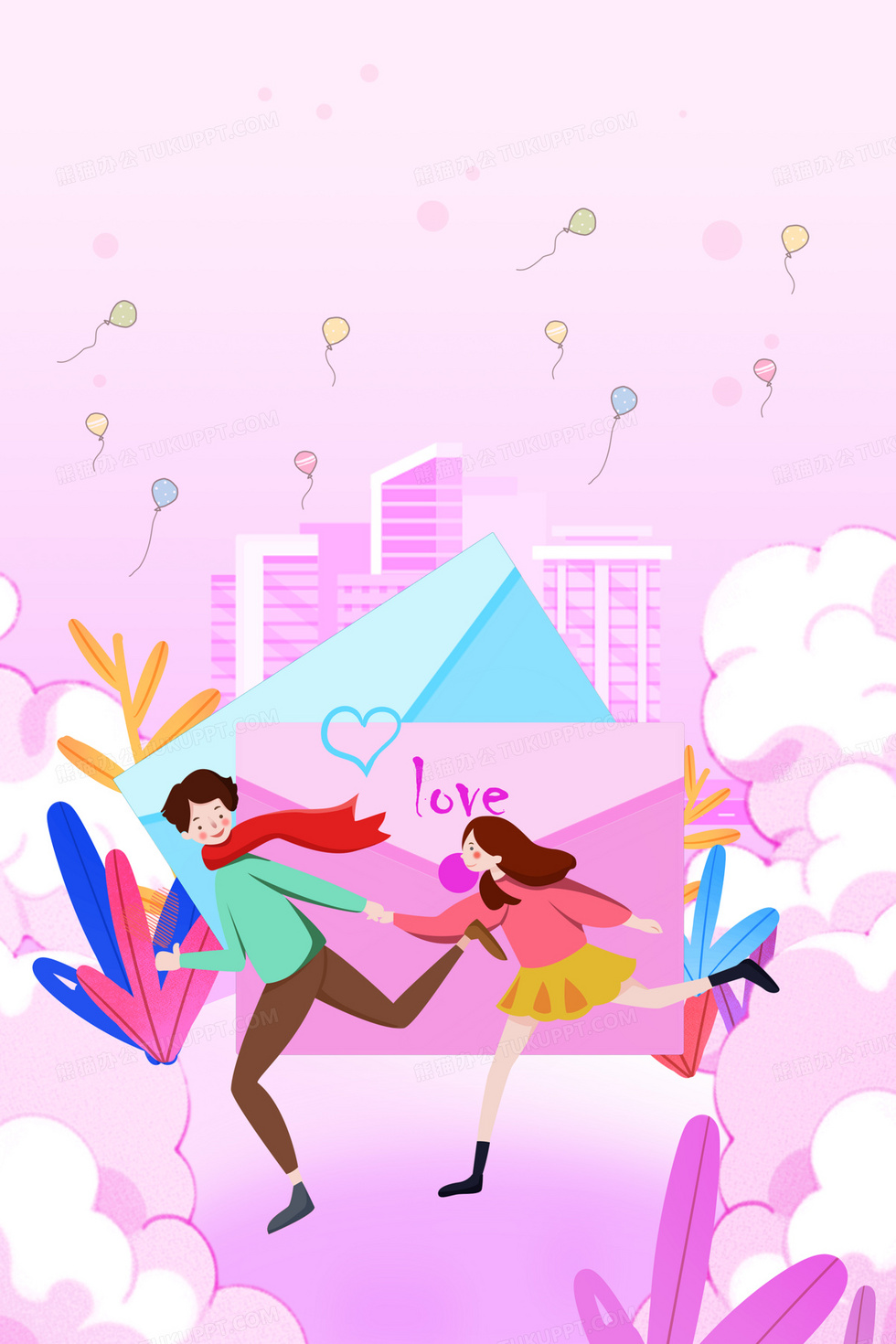 本作品内容为情侣送信合成背景, 格式为 psd, 大小26 MB, 图片尺寸为3543 x 5314, 作品中背景图片无需修改, 源文件无水印,可以直接使用, 欢迎使用熊猫办公。 如认为平台内容涉嫌侵权,可通过邮件:tousu@tukuppt.com提出书面通知,我们将及时处理。