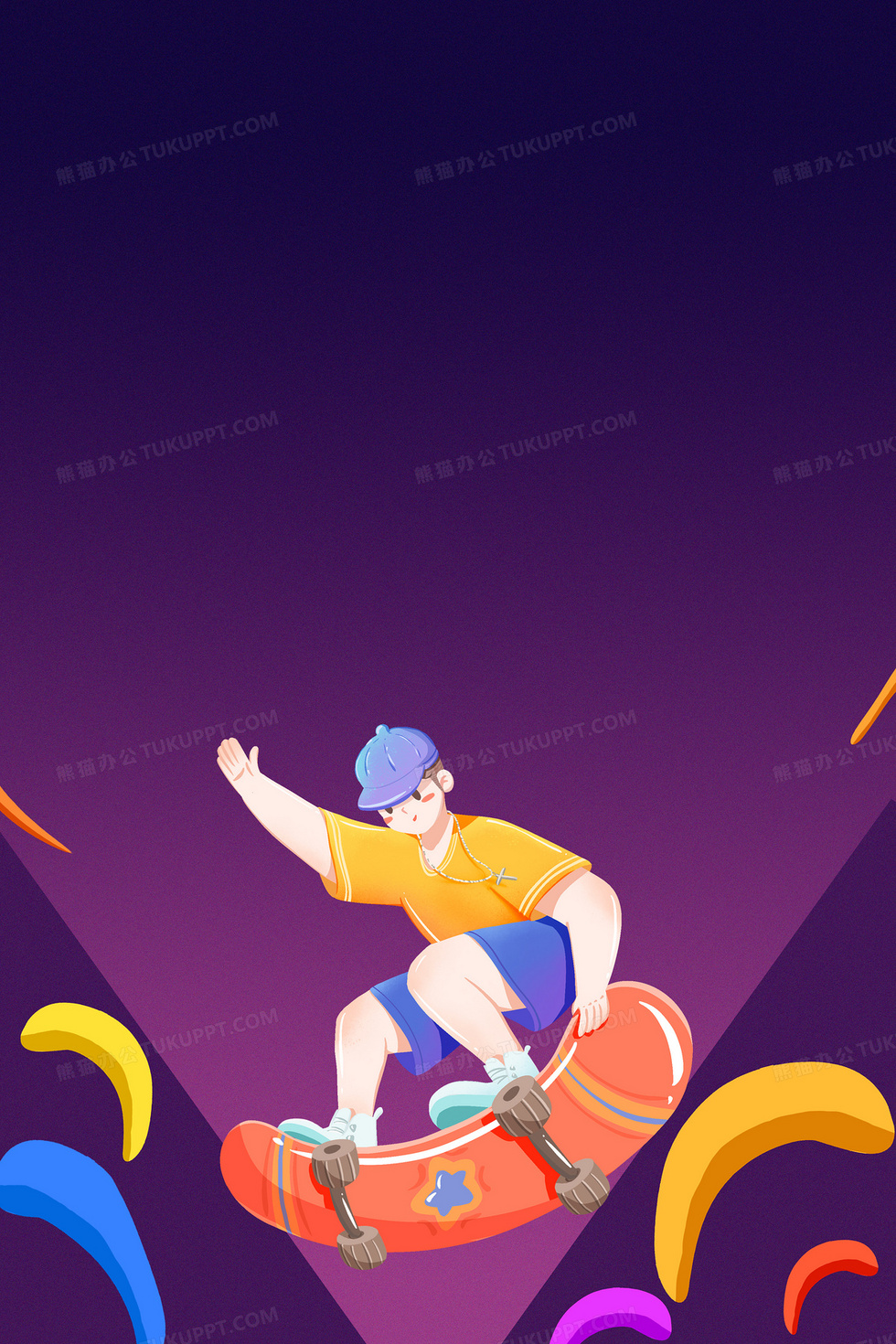 本作品内容为卡通插画风滑板合成背景, 格式为 psd, 大小77 MB, 图片尺寸为3543 x 5314, 作品中背景图片无需修改, 源文件无水印,可以直接使用, 欢迎使用熊猫办公。 如认为平台内容涉嫌侵权,可通过邮件:tousu@tukuppt.com提出书面通知,我们将及时处理。