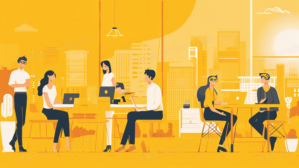 本作品内容为办公室里工作的白领们插画, 格式为 jpg, 大小2 MB, 图片尺寸为2912 x 1632, 源文件无水印, 欢迎使用熊猫办公。 如认为平台内容涉嫌侵权,可通过邮件:tousu@tukuppt.com提出书面通知,我们将及时处理。