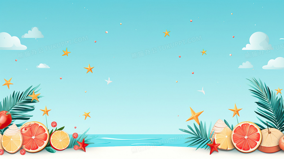 本作品内容为卡通夏季沙滩背景, 格式为 jpg, 大小3 MB, 图片尺寸为2912 x 1632, 作品中背景图片无需修改, 源文件无水印,可以直接使用, 欢迎使用熊猫办公。 如认为平台内容涉嫌侵权,可通过邮件:tousu@tukuppt.com提出书面通知,我们将及时处理。