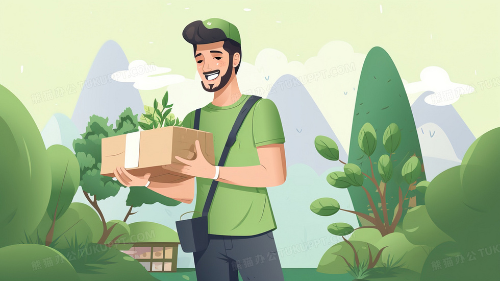 本作品内容为春天绿色快递员绿植插画, 格式为 jpg, 大小2 MB, 图片尺寸为2912 x 1632, 源文件无水印, 欢迎使用熊猫办公。 如认为平台内容涉嫌侵权,可通过邮件:tousu@tukuppt.com提出书面通知,我们将及时处理。