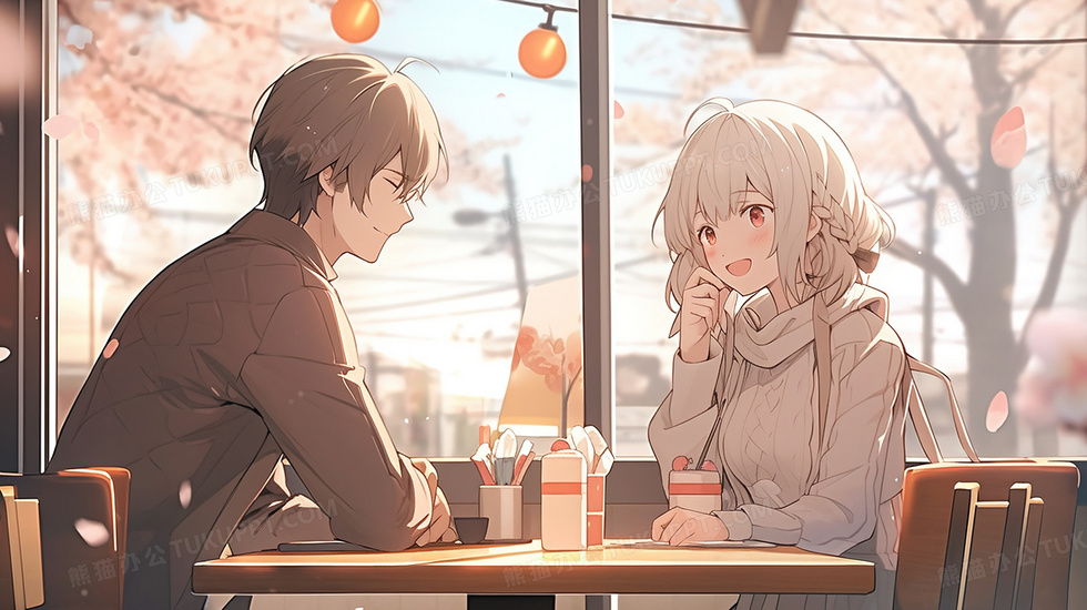 本作品内容为咖啡店约会的情侣插画, 格式为 jpg, 大小2 MB, 图片尺寸为2912 x 1632, 源文件无水印, 欢迎使用熊猫办公。 如认为平台内容涉嫌侵权,可通过邮件:tousu@tukuppt.com提出书面通知,我们将及时处理。