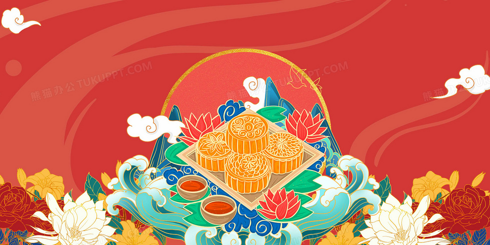 本作品内容为国潮牡丹花月饼点心国风背景, 格式为 psd, 大小26 MB, 图片尺寸为4724 x 2362, 作品中背景图片无需修改, 源文件无水印,可以直接使用, 欢迎使用熊猫办公。 如认为平台内容涉嫌侵权,可通过邮件:tousu@tukuppt.com提出书面通知,我们将及时处理。