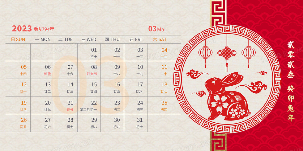本作品内容为红色烫金兔年三月日历装饰素材, 格式为 psd, 大小54 MB, 图片尺寸为4724 x 2362, 作品中背景图片无需修改, 源文件无水印,可以直接使用, 欢迎使用熊猫办公。 如认为平台内容涉嫌侵权,可通过邮件:tousu@tukuppt.com提出书面通知,我们将及时处理。