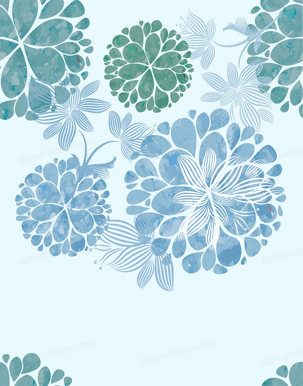 本作品内容为矢量水彩蓝色花团背景, 格式为 ai, 图片尺寸为5696 x 7261, 作品中背景图片无需修改, 源文件无水印,可以直接使用, 欢迎使用熊猫办公。 如认为平台内容涉嫌侵权,可通过邮件:tousu@tukuppt.com提出书面通知,我们将及时处理。